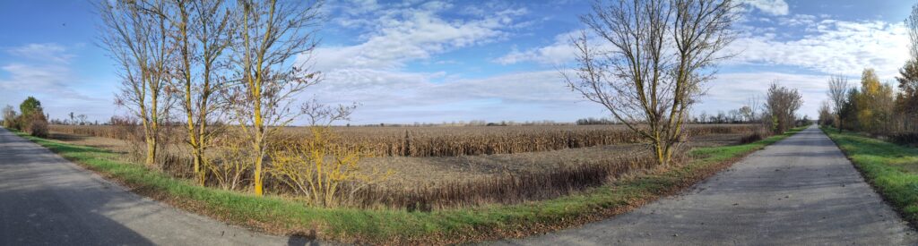 Bei den Bildern greife ich oft zu Panorama-Aufnahmen um die gewöhnliche Raum-Perspektive zu verlassen. Meinen eigenen Schatten verwende ich dabei gerne, seit vielen Jahrzehnten, bei Landschaftsaufnahmen, als Stil-Element, manchmal sehr prominent aber manchmal auch ganz unauffällig.